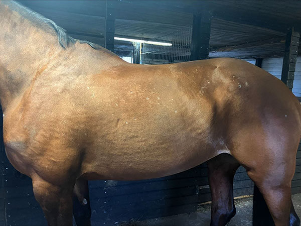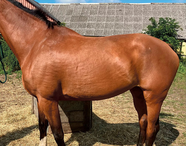 Hän on ollut ruokavaliossa noin 7 kuukautta. Hän näyttää upealta turkissa – ja muutenkin. Hän ei ole enää menossa pois hyvästä nahastaan. Nyt häntä voi harjata ilman, että hän kaatuu, koska kutina ei ole enää niin kauheaa. Hänestä on tullut iloisempi hevonen olla yhdessä. Ei tarvitse enää pelätä puremista tai potkimista, kun olet lähellä häntä. Koska nyt hänen kehonsa on paljon paremmassa tasapainossa.