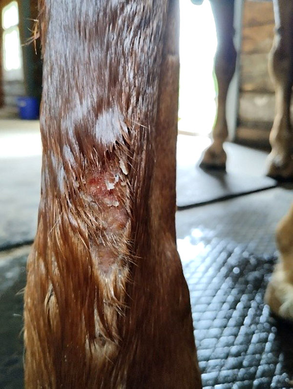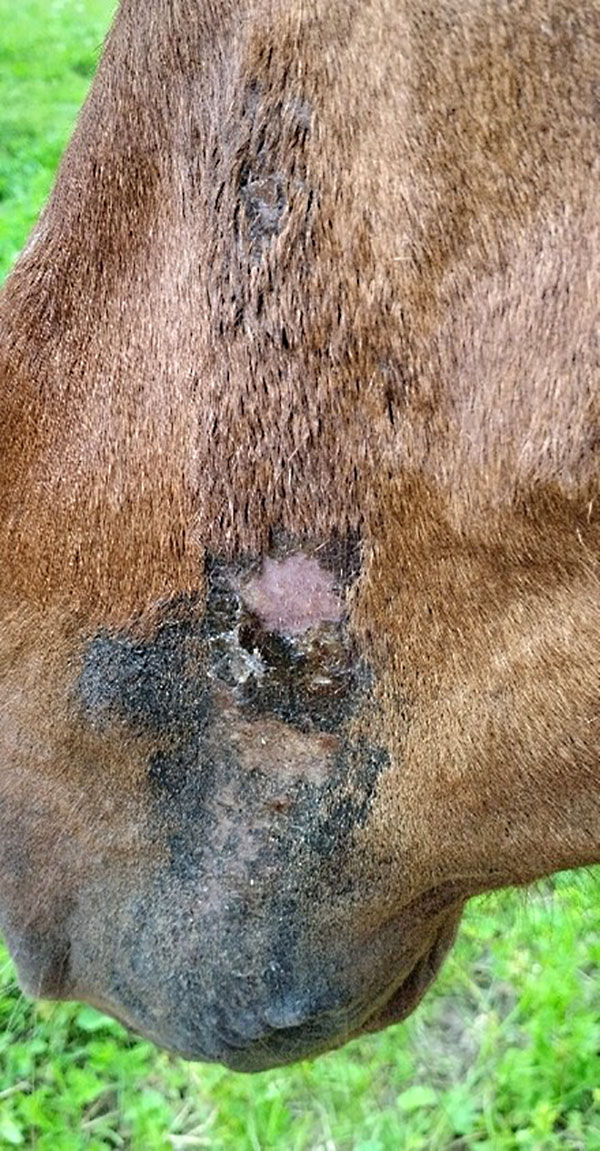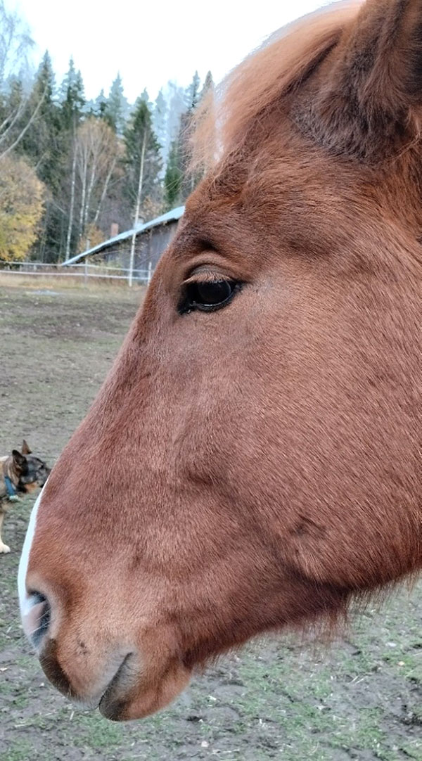 Ruokinnan muutoksen jälkeen iho alkoi välittömästi parantua, ja Elmeri on nyt jälleen iloinen harrastehevonen!