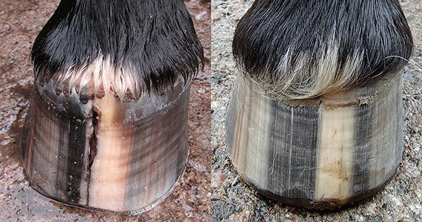 Vierailimme Safin luona seuraavan vuoden maaliskuussa, ja molemmat etukaviot näyttivät täysin normaaleilta! Puoli vuotta ruokinnan muutoksen jälkeen molemmat halkeamat olivat kadonneet, ja ongelma, joka oli vaivannut ponia vuosien ajan, oli ratkaistu.