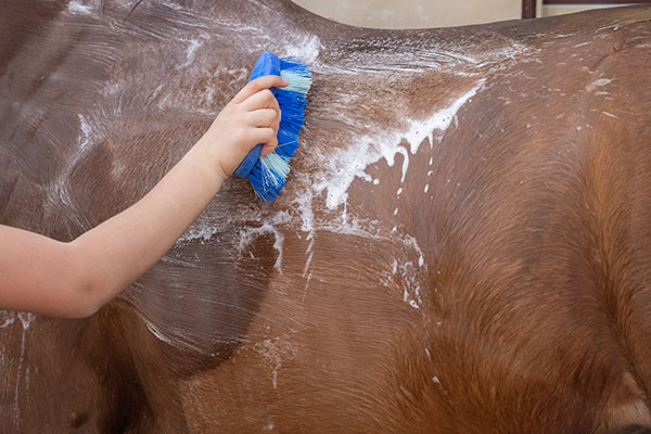 Shampoon jäämät voivat ärsyttää ihoa ja aiheuttaa kutinaa. Varmista aina, että huuhtelet hevosesi huolellisesti, jotta karvapeitteeseen ei jää saippuajäämiä.