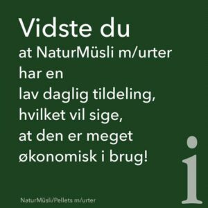 NaturMüsli yrteillä on valmistettu erityisesti Pohjoismaiden oloihin ja sisältää laajan valikoiman energiapitoisia raaka-aineita ja kasvinosia, joissa on runsaasti ravintoaineita. Tiivistetty muoto tekee NaturMüslistä houkuttelevan ja taloudellisen rehun, koska jo pieni määrä kattaa hevosen vitamiinien ja kivennäisaineiden normaalin tarpeen.